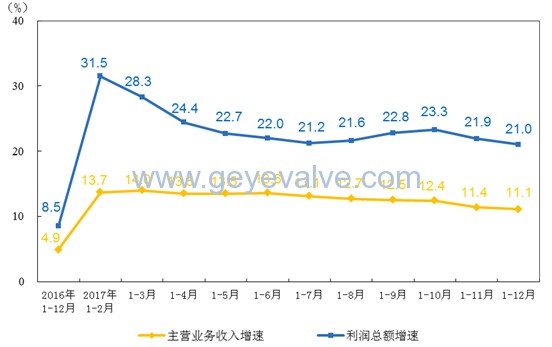 2017年,在41個工業(yè)大類行業(yè)中,37個行業(yè)利潤總額比上年增加,1個行業(yè)持平,3個行業(yè)減少。主要行業(yè)利潤情況如下:煤炭開采和洗選業(yè)利潤總額比上年增長2.9倍,農(nóng)副食品加工業(yè)增長4.5%,紡織業(yè)增長3.6%,石油加工、煉焦和核燃料加工業(yè)增長27%,化學(xué)原料和化學(xué)制品制造業(yè)增長40.9%,非金屬礦物制品業(yè)增長20.5%,黑色金屬冶煉和壓延加工業(yè)增長1.8倍,有色金屬冶煉和壓延加工業(yè)增長28.6%,通用設(shè)備制造業(yè)增長13.5%,專用設(shè)備制造業(yè)增長29.3%,汽車制造業(yè)增長5.8%,電氣機(jī)械和器材制造業(yè)增長5.2%,計算機(jī)、通信和其他電子設(shè)備制造業(yè)增長22.9%,石油和天然氣開采業(yè)由同期虧損轉(zhuǎn)為盈利,電力、熱力生產(chǎn)和供應(yīng)業(yè)利潤總額比上年下降15.4%。